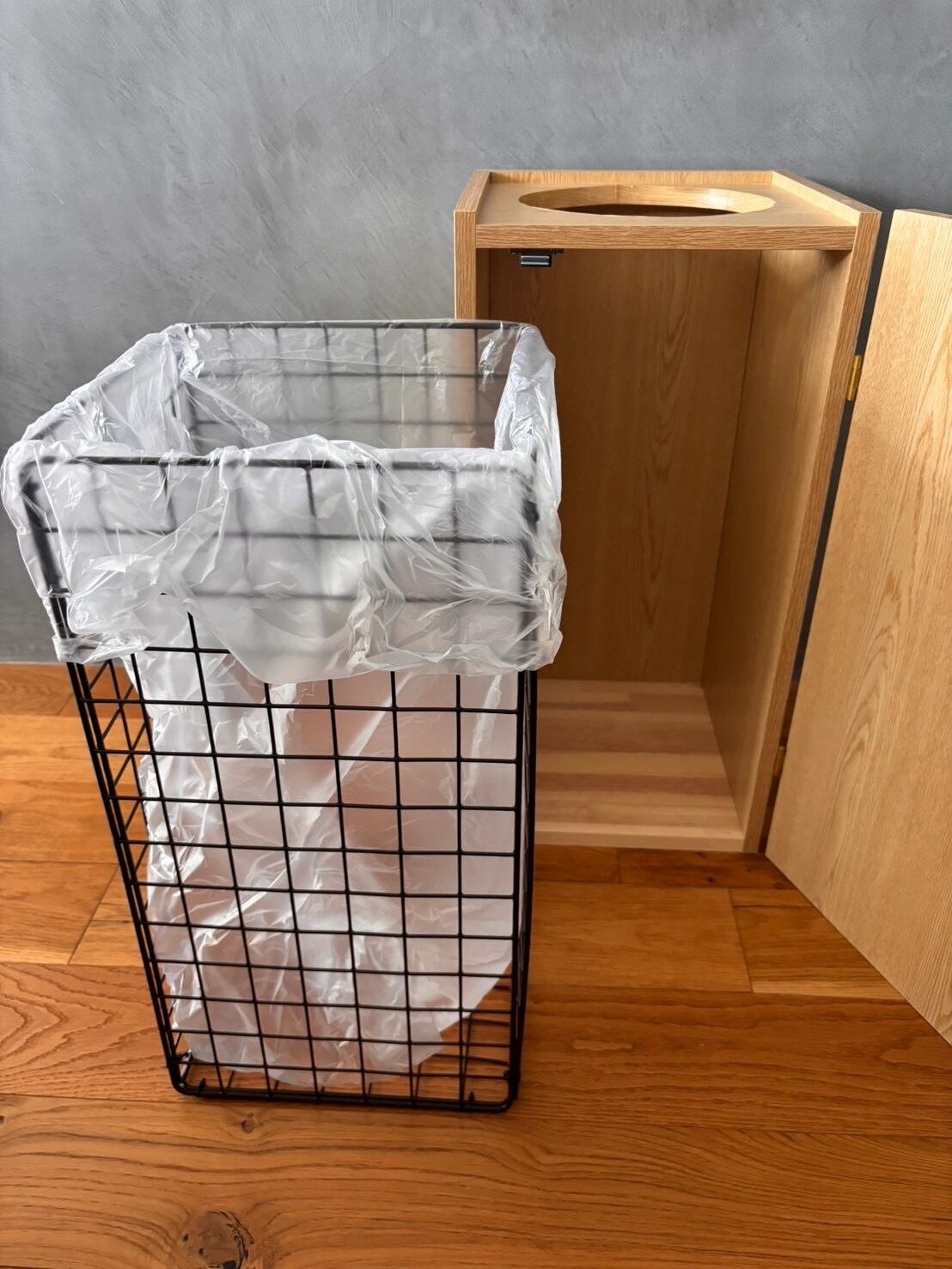 その他にも中のカゴにゴミ袋を被せれば、リビングルームやキッチンでゴミ箱として使うこともできます。